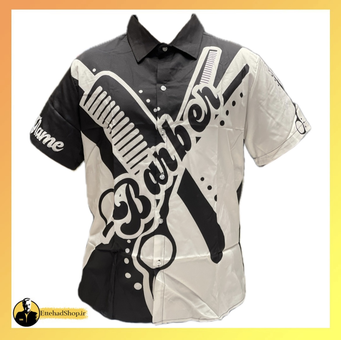 👔 پیراهن آرایشگری طرح شانه و قیچی حرفه ای| تولید اختصاصی با پارچه درجه یک